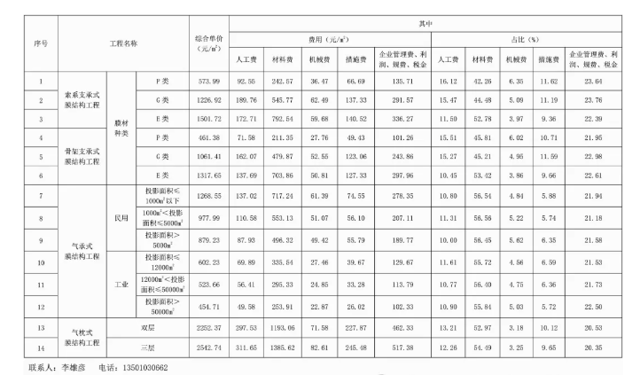膜結(jié)構工程【造價指標】發(fā)布