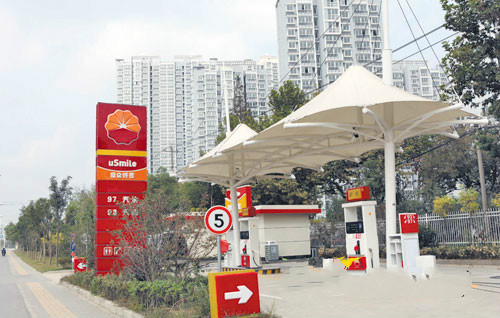 小型加油站膜結(jié)構(gòu)屋頂設(shè)施,傘形張拉結(jié)構(gòu)不僅完全覆蓋了加油場地,也營造了無遮擋的視覺空間,膜材防曬難燃自潔性好,用于加油站屋頂建設(shè)非常適宜。