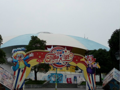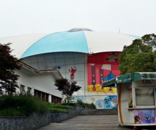 馬戲表演廳膜結(jié)構(gòu)穹頂,藍(lán)白相間的膜材顯得輕快活潑,身處其中覺得輕松敞亮。