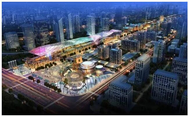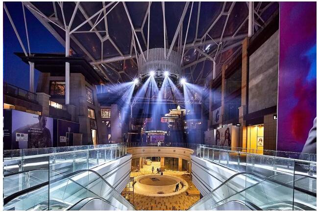 在整個(gè)商業(yè)街的中心位置,有一個(gè)形如水晶的重疊式傘形雨篷。