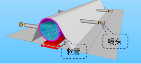 推薦使用第三種排雪措施:在氣膜的兩個(gè)膜單元分縫夾板鏈條位置處預(yù)先布設(shè)Φ50軟管,泵送高濃度鹽水到氣膜屋頂,軟管端頭設(shè)置電動(dòng)噴頭,智能控制,鹽水撒到屋頂積雪時(shí),積雪快速融化,消除積雪堆積效應(yīng),將雪荷載對(duì)膜產(chǎn)生不利影響降低到最小。