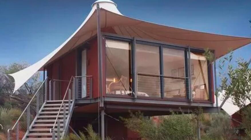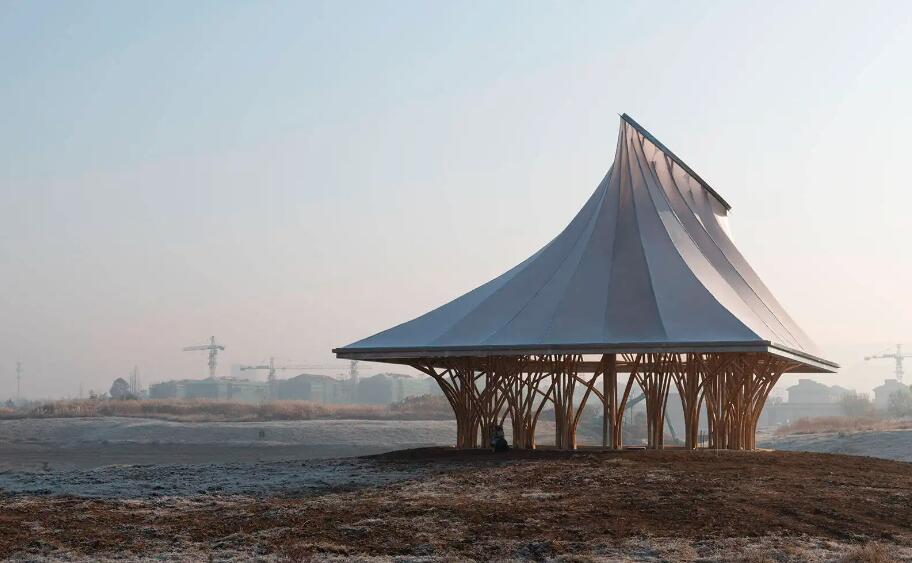 那么,張拉膜結(jié)構(gòu)過時了嗎?并沒有,在流行混搭的時代,膜結(jié)構(gòu)能駕馭的建筑形式也更加多樣化,它能搭配的不再是鋼結(jié)構(gòu),而與木結(jié)構(gòu)、竹結(jié)構(gòu),集裝箱,甚至混凝土結(jié)構(gòu)搭配也能呈現(xiàn)耳目一新的效果。它可以是小體量建筑、景觀構(gòu)筑物、也可以是大跨度建筑屋頂及建筑外立面等。