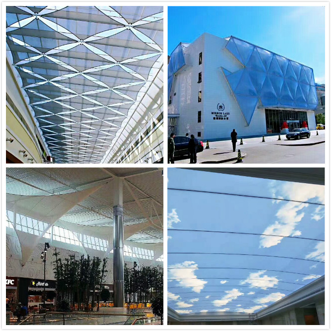 張拉膜結(jié)構(gòu)是一種富于表現(xiàn)力、結(jié)構(gòu)性能強(qiáng)、施工精度要求高的結(jié)構(gòu)體系。通過對(duì)高強(qiáng)度膜材進(jìn)行有順序、有控制的預(yù)應(yīng)力張拉,形成完美的空間曲面結(jié)構(gòu),從而體現(xiàn)設(shè)計(jì)者完美的設(shè)計(jì)意圖。在滿足使用功能的前提下給人們以藝術(shù)美的享受。