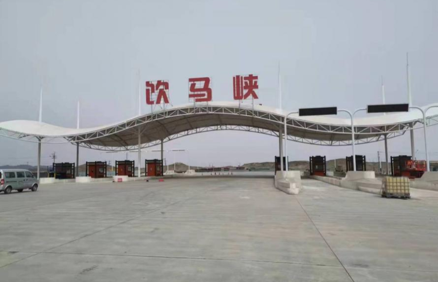 G215線馬鬃山至橋?yàn)彻凤嬹R峽收費(fèi)站大棚張拉膜結(jié)構(gòu)工程基本完工,工程采用進(jìn)口白色PTFE膜材,膜材覆蓋面積近2000㎡。
