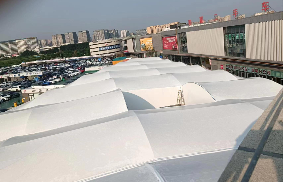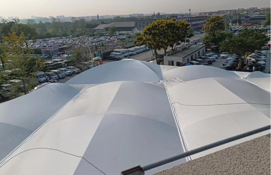 雙流二手車市場膜結(jié)構(gòu)工程施工進展
