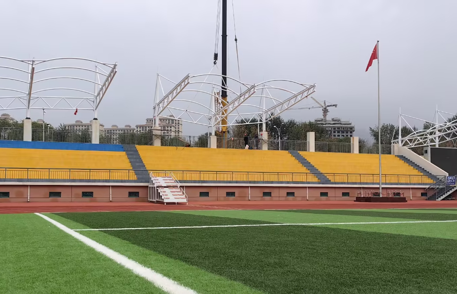 青海海東學(xué)校膜結(jié)構(gòu)看臺工程進展