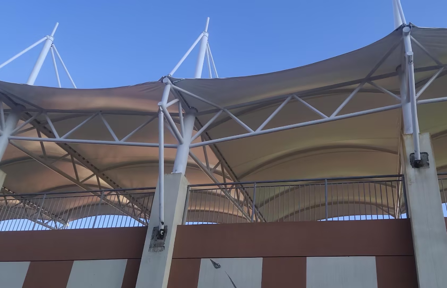 青海海東三中看臺(tái)膜結(jié)構(gòu)雨棚工程近日完工,工程體量包含看臺(tái)及主席臺(tái)的雨棚安裝,設(shè)計(jì)為懸挑張拉結(jié)構(gòu),整體造型美觀,結(jié)構(gòu)穩(wěn)固,視野無遮擋,大大提升了校園環(huán)境。