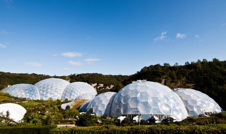 ETFE最早由杜邦公司于七十年代研發(fā),作為一種輕質(zhì)、阻熱的薄膜,可用作航空工業(yè)中的覆蓋層。從那時(shí)起,這種薄膜被零星的應(yīng)用于農(nóng)業(yè)和建筑領(lǐng)域,例如溫室的覆蓋層和太陽(yáng)能板保護(hù)層。之后,在2001年,這種材料迎來(lái)了第一次大規(guī)模應(yīng)用,作為英國(guó)康沃爾郡“伊甸園計(jì)劃”(Eden Project)巨大圓形溫室的表面膜材料。該項(xiàng)目是巴克敏斯特·富勒(Buckminster Fuller)的蒙特利爾生物圈概念的進(jìn)化版。奧雅那(Arup)作為工程顧問(wèn)公司,選擇了ETFE,因其可靠的建筑環(huán)境調(diào)節(jié)能力,可以通過(guò)在膜上打印特定的紋理并將其層疊來(lái)調(diào)節(jié)光照,這對(duì)于建立一個(gè)適合特定植物生長(zhǎng)的人工氣候是十分必要的。另外,建筑師發(fā)現(xiàn)ETFE的低摩擦系數(shù)可以防止塵土粘附在表面,從而減少維護(hù)成本。