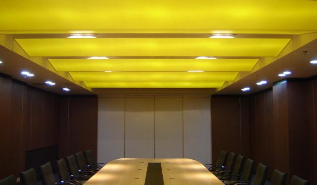 軟膜天花的表面是依照電影銀幕制造原理生產(chǎn),表面有無數(shù)凹凸紋,目的正是要將燈光折射度加強(qiáng),因此透光性良好,在封閉的空間內(nèi)透光率為75%,能產(chǎn)生完美,獨特的燈光裝飾效果。
