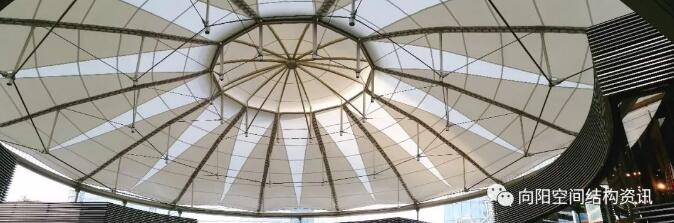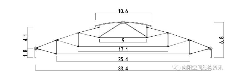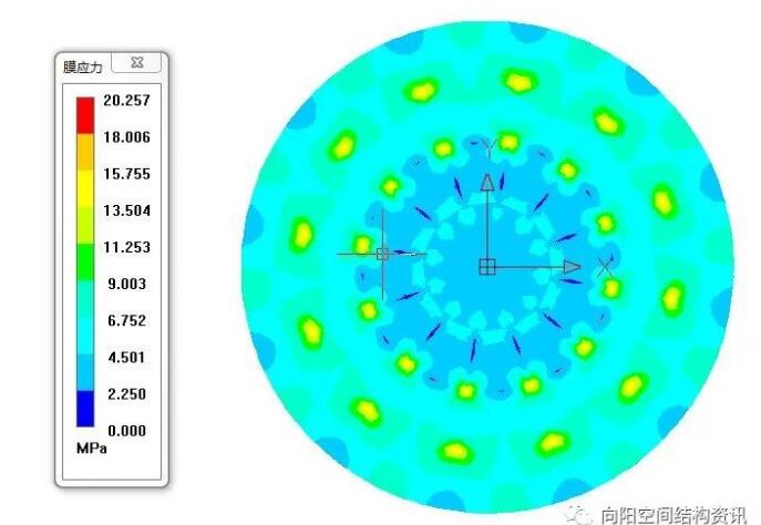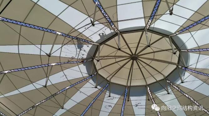 需要說明的是,內(nèi)環(huán)尺寸是由建筑設計確定的,并且這里膜面錯層,且期間是開敞的,以達到通風的效果。如果僅從結構考慮,內(nèi)環(huán)可以再小很多,結構自重會更輕。